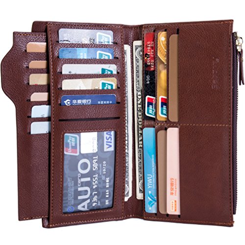 ALAIX Mens Bifold Slim Leather Wallet RFID Blocking with 17 Card Slots