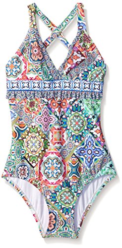 Nanette Lepore Big Girls' Greek Tiles OTS One Piece, Multi, 12