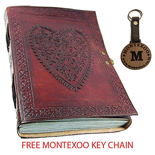 Leather World Ltd. Large Vintage Heart Embossed Leather Journal/instagram Photo Album (Handmade Paper) - Coptic Bound with Lock Closure