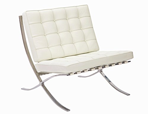 MCM Barcelona Style Modern Pavilion Chair (Cream White) - High Quality Italian Leather with Stainless Steel Frame - HS004WIL-2