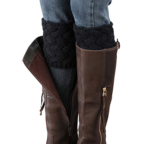 FAYBOX Short Women Crochet Boot Cuffs Winter Cable Knit Leg Warmers Black