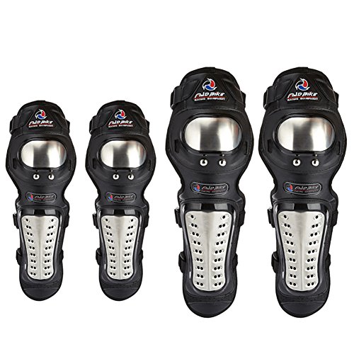 A.B Crew 1 Set Stainless Steel Motorcycle Knee Pads and Elbow Pads Protective Motocross Armor Set Adjustable Elastic Strap