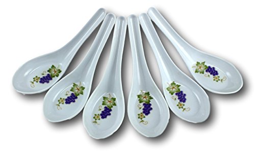 Commercial Grade Asian Soup Spoons - Ramen, Soba, Won Ton Melamine Spoon Set by bogo Brands (6, Grapevine)