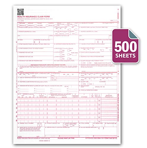 CMS 1500 / HCFA 1500 Insurance Claim Forms - Laser/Ink-Jet Compatible (New Version 02/12) Letter Size 8-12" x 11" 500 Sheets Per Ream