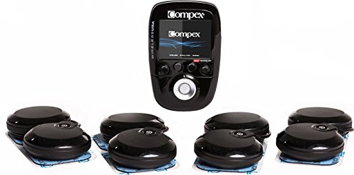 Compex Wireless USA Black Muscle Stimulator Bundle Kit: Muscle Stim, 16 Snap Electrodes, 9 Programs, Wireless PODs, Charge Station / 4 strength, 2 warm-up, 3 recovery