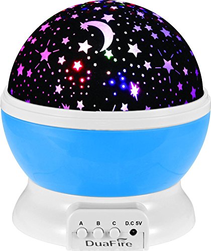 DuaFire Night Lighting Lamp 3 Model Light Romantic Rotating Cosmos Star Sky Moon Projector Decorating Room Comfort Kids Christmas Gift(Blue)