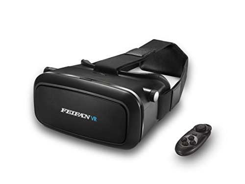 FeiFan 3D VR Virtual Reality Headset with Bluetooth Remote Google Version 3D VR Glasses with Adjustable Strap for 3.5 to 5.7" inch IOS Android Smartphone color black