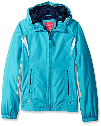 London Fog Girls' Big' Lightweight Polka Dot Lined Radiance Jacket, Turquoise, 10/12