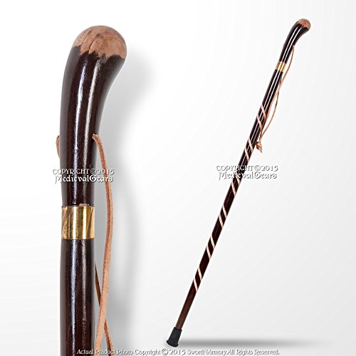 Medieval Gears Brand Solid Wooden Walking Stick Round Grip Gentlemen Spiral Fluted Walking Cane