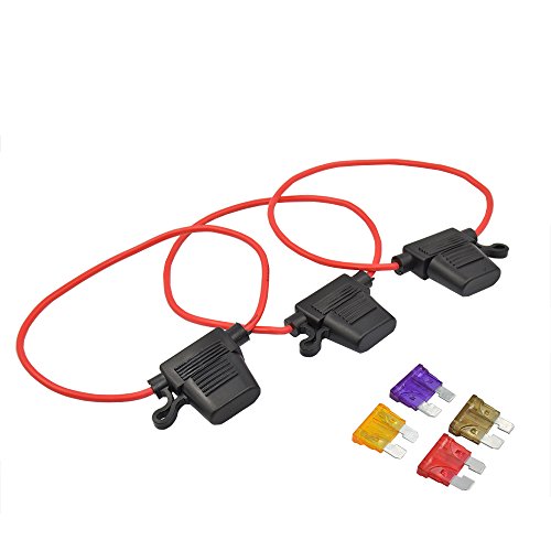 3 Pack -12V Water-resistant Add-A-Circuit Blade Type Inline Fuse holder with Cap16 Gauge (Larger)