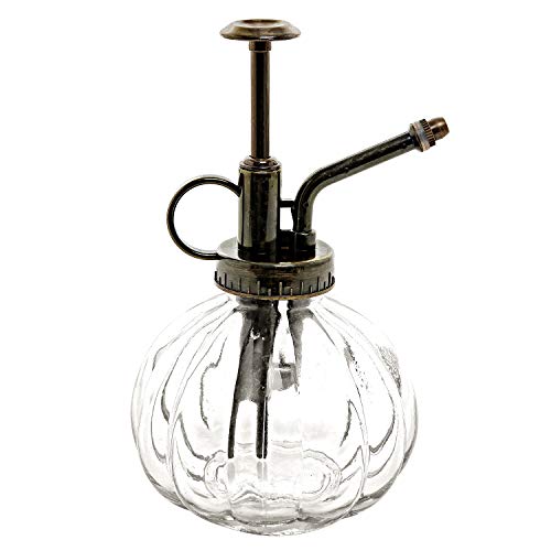 Clear Vintage Style Decorative Ribbed Glass Plant Mister Bottle with Top Pump