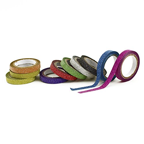 Adorox Skinny Thin Assorted Rainbow Washi Craft Masking Tape Art (Glitter)