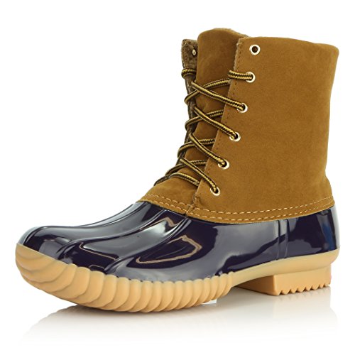 DailyShoes Women's Snow Booties Up Ankle High Plain Duck Padded Mud Rubber Rain Boots
