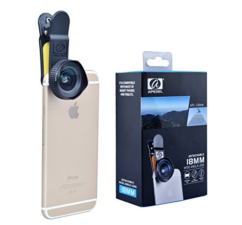 Apexel Universal Professional HD 18mm Wide Angle Camera Lens Kit for iPhone 6/6s 6Plus/6s Plus 5/5s Samsung Galaxy S7/S7 Edge S6/S6 Edge S5 S4 Note 5 4 3 HTC Sony LG (No Distortion No Dark Corner)