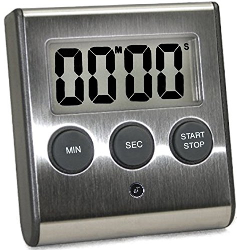 Elegant Digital Kitchen Timer, Stainless Steel Model eT-23, SUPER Strong Magnetic Back, Loud Alarm, Large Display, Auto Memory, Auto Shut-Off