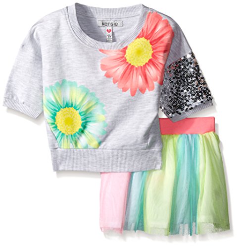 Kensie Girls' 2 Piece French Terry Cropped Top and Skirt with Rainbow Tulle Set