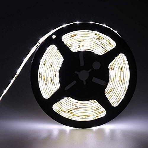 Waterproof Led Strip Lights SMD 3528 16.4 Ft (5M) 300leds 60leds/m White Flexible Tape Lighting Tape Lights for Boats, Bathroom,Mirror,Ceiling and Outdoor (cold white), Power Supply not Included