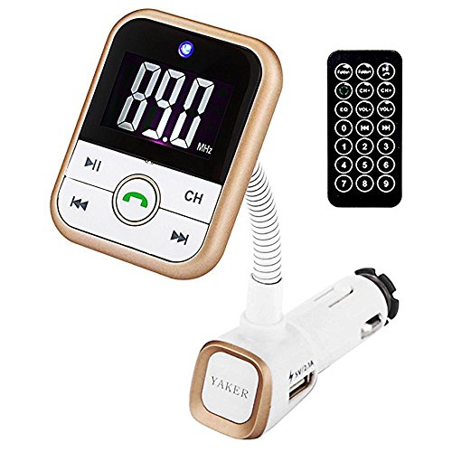 YAKER Bluetooth FM Transmitter, Wireless In-Car Radio Adapter/Car Charger/MP3 Player/Remote Control/Handsfree Calling for iPhone7s/7/7 Plus,iPad,Samsung Galaxy (Gold)