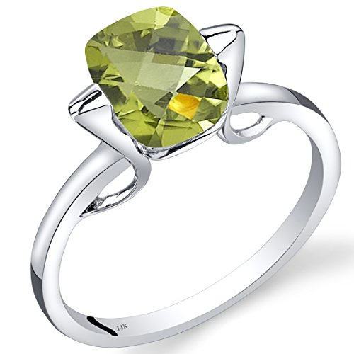 14K White Gold Peridot Minmalistic Solitaire Ring 2 Carats