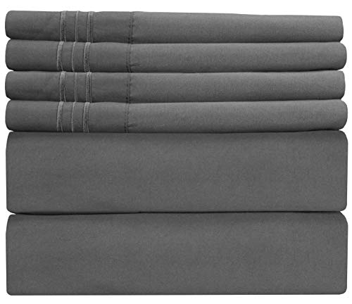 Queen Size Sheet Set - 6 Piece Set - Hotel Luxury Bed Sheets - Extra Soft - Deep Pockets - Easy Fit - Breathable & Cooling Sheets - Wrinkle Free - Dark Gray - Grey Bed Sheets - Queens Sheets - 6 PC