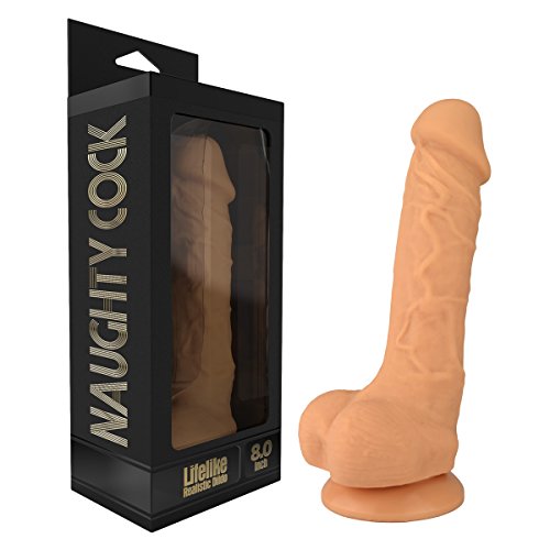Naughty Cock Silicone Dildo - Huge, Thick, Realistic, Suction Cup - Sex Toy for Vaginal, Anal, and G-Spot - 8 Inch (Flesh)