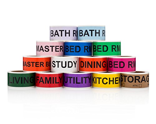 Saurus Home Moving Labels, 4-bedroom House, 14 Rolls, 50 Labels Per Living Space, 14 Different Colors, 700 Total Labels, 1" Height X 4.5" Width, Color Coding Labels