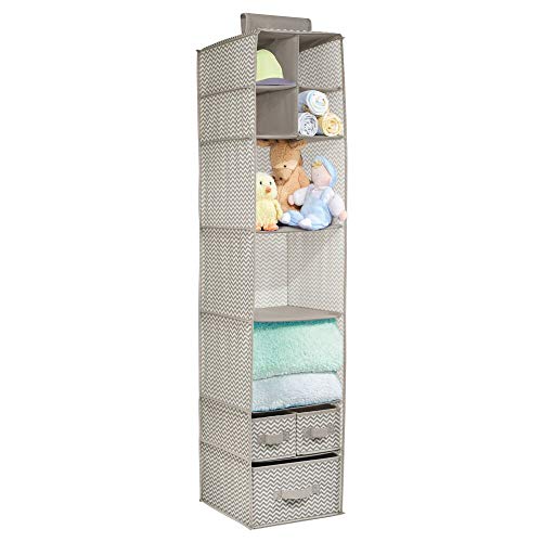 mDesign Soft Fabric Over Closet Rod Hanging Storage Organizer with 7 Shelves and 3 Removable Drawers for Child/Kids Room or Nursery - Chevron Zig-Zag Print - Taupe/Natural