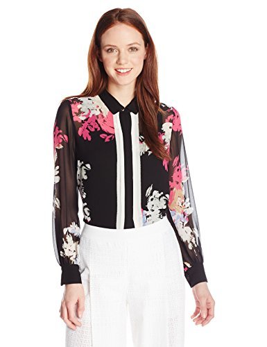 ELLEN TRACY Women's Petite Size Layered Placket Button Front Blouse, Vibrant Blooms Multi, X-Large