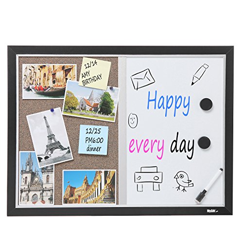 2-in-1 Black Wood Framed Wall Mounted Combination Bulletin Cork Board & Magnetic Whiteboard - MyGift