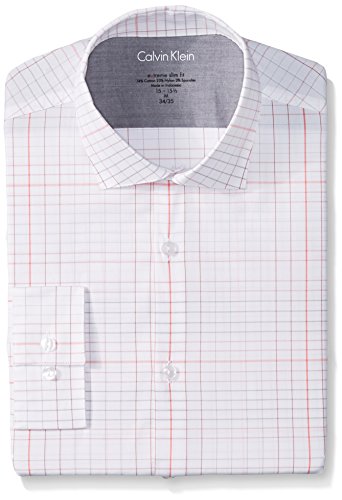 Calvin Klein Men's Xtreme Slim Fit Exploded Check, Melon, 14"-14.5" Neck 32"-33" Sleeve (Small)
