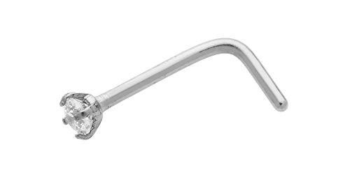 L-Shaped Nose Ring Surgical Grade 316L Steel 20g Cubic Zirconia Top (2mm)