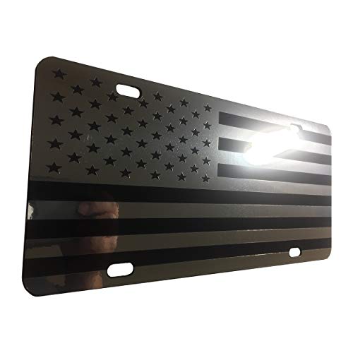 CustoMonsterDesigns American Flag Made with Chrome Mirror Silver Vinyl Sticker on Black Mirror Acrylic License Plate S4