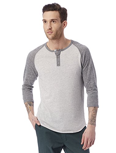 Alternative Men's Raglan 3/4 Sleeve Henley Shirt, Eco True Ocean Blue, Large