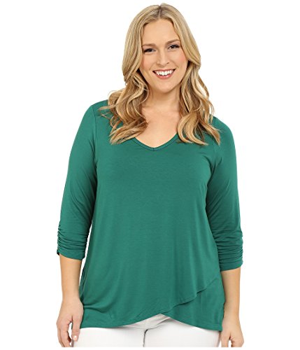 Karen Kane Women's Plus Size Ruched Sleeve Asymmetrical Hem Top, Green, 1X