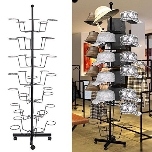 Homdox 7 Tier Hat Display Rack Stand Rotating Hat Rack Adjustable Metal Free Standing Floor Stand for Baseball Caps, Women's & Men's, Cowboy's Hat (Black)