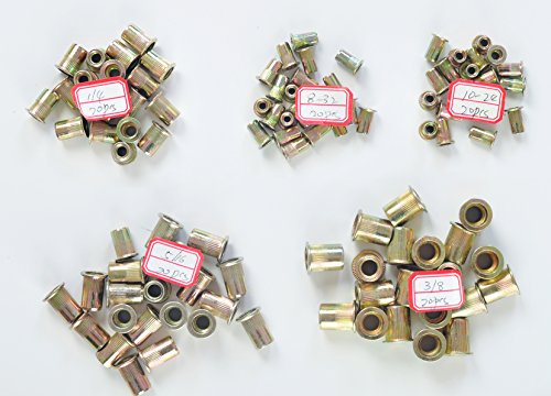 Q&R 100pcs Steel Rivet Nut Insert Nutsert #8-32 #10-24 1/4-16 5/16-18 3/8-16