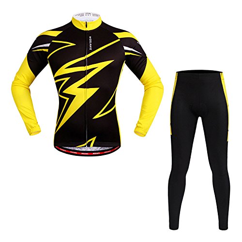 Men and Women Cycling Jersey pants Long Sleeve Jacket 3D Padded pants Set Outfit -Black with Yellow