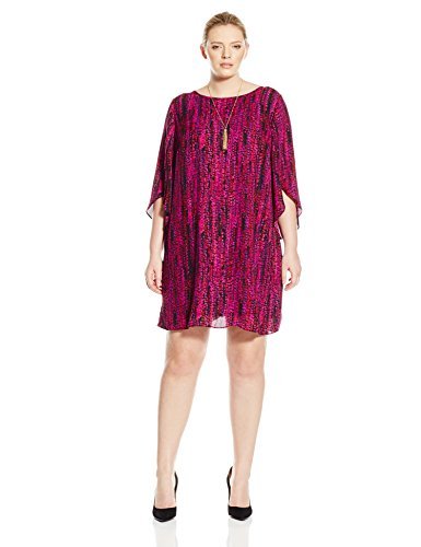 AGB Women's Plus-Size Tulip Sleeve Scoop Neck Day and Night Dress, Fuchsia Pat B, 20W