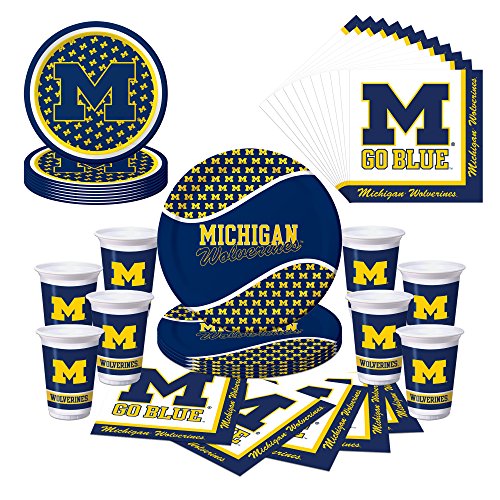 Michigan Wolverines U of M Party Bundle with Plates, Cups, Napkins