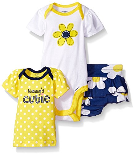 Gerber Baby Three-piece Bodysuit Lap-shoulder Shirt and Skort Set, Sunflower, New Born