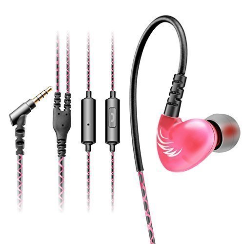 Reshow in-Ear Sport Headphones Pink – Earbuds with Stereo Surround Sound – Anti-Slip Noise Isolating Earphones with Heavy Bass – in-Line Microphone – Sweat Proof for Gym, Fitness, Exercise & Crossfit