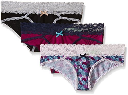 Honeydew Intimates Women's Ahna Hipster 3 Pack, Black Silver/Pomegranate Echo/Multi Floral Ski Bunny, Medium
