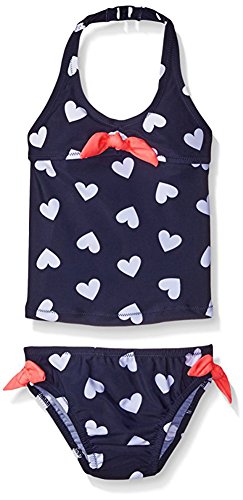 Osh Kosh Baby Girls' Heart Print with Ties Two Piece Tankini, Navy, 18 Months