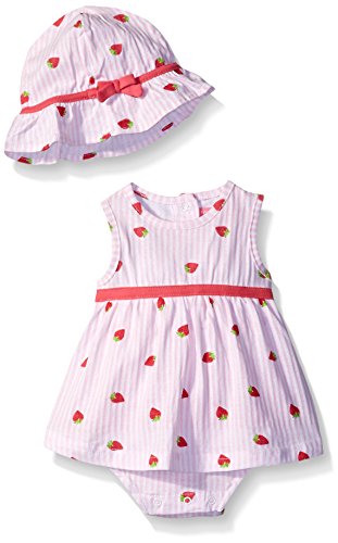 Isaac Mizrahi Baby Girls' 2 Piece Strawberry Sundress and Sunhat Set, 0-3 Months