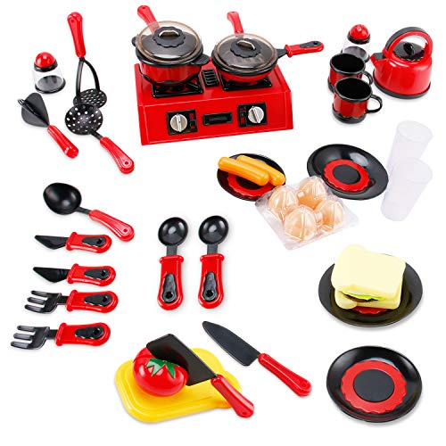Liberty Imports 44 Pieces Mini Breakfast Stove Top Kitchen Appliances Playset with Play Food, Tools and Utensils - Pretend Play Cookware Toys for Toddlers and Kids
