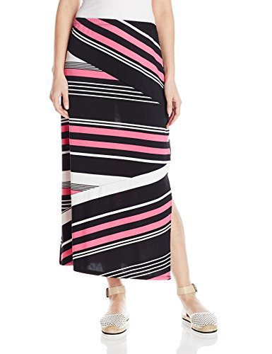 Notations Women's Stripe ITY 3 Panel Maxi Skirt, Pink Airtran, Large