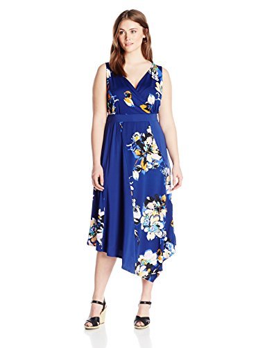 NY Collection Women's Plus-Size Printed Sleeveless Maxi Dress, Indigo Aviflora, 2X