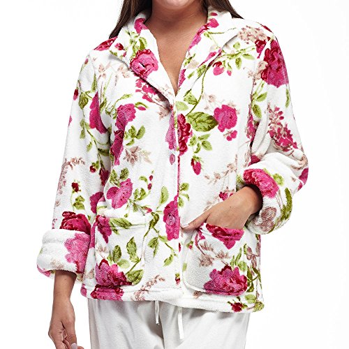 La Cera Women's Plus-Size Floral Microfleece Bed Jacket