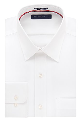 Tommy Hilfiger Men's Non Iron Regular Fit Point Collar Dress Shirt, White, 16.5" Neck 32"-33" Sleeve