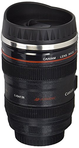 Coffee Mug - Camera Lens Travel Thermos - Stainless Steel Insulated Cup with Easy Clean Lid - 13.5oz - Black - Go with Premium Stainless Steel Spoon Bonus_uHome